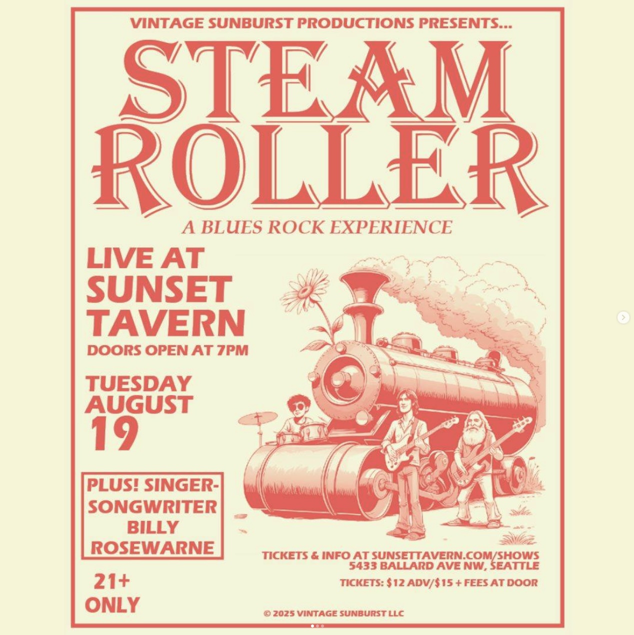 I’m headed to The Sunset to see my friend Billy Rosewarne open for Steamroller. Anyone care to join me? Doors are at 7 and Billy goes on at 7:30 or so.